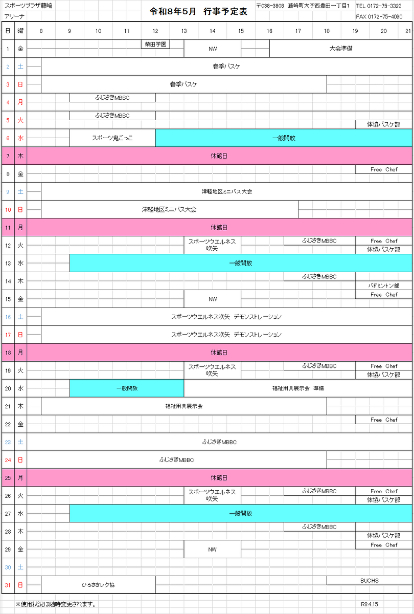スポーツプラザ藤崎 アリーナ利用状況