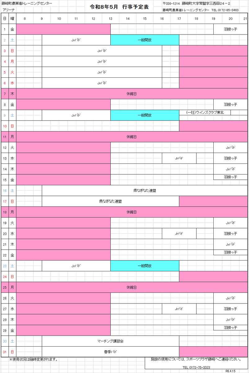 藤崎町農業者トレーニングセンター アリーナ利用状況