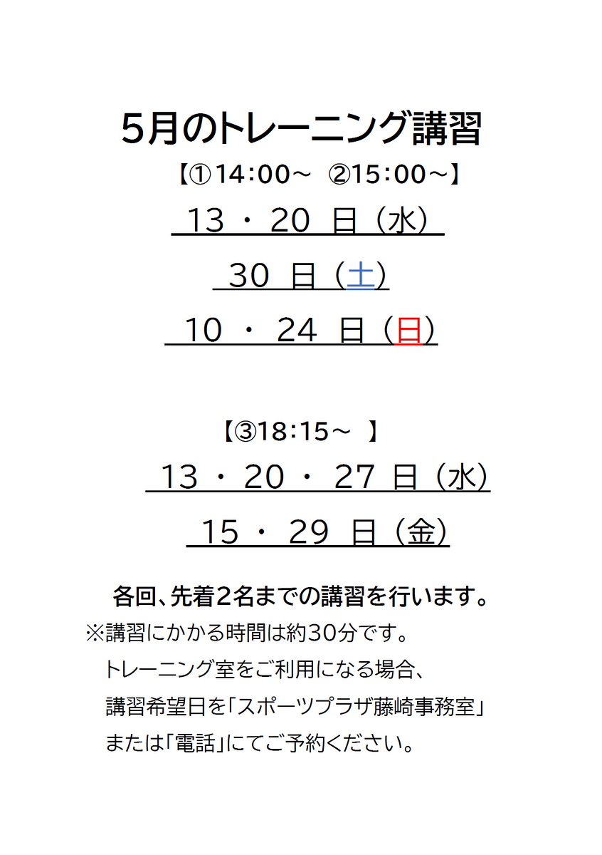 ふじさきいきいきスポーツクラブ5月の活動カレンダー