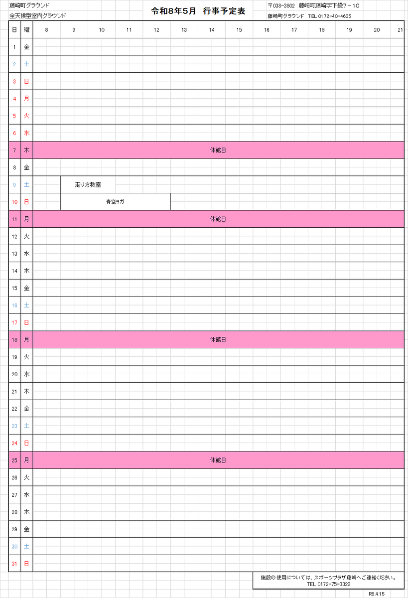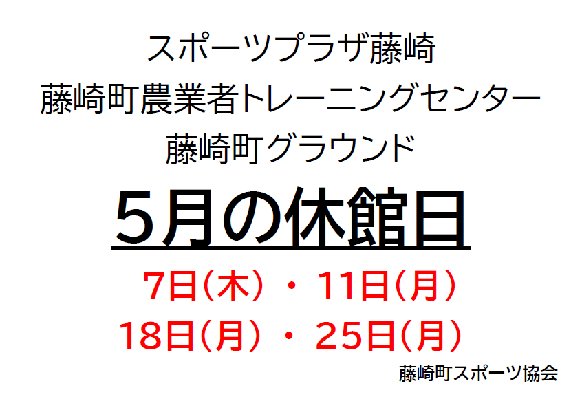 5月の休館日
